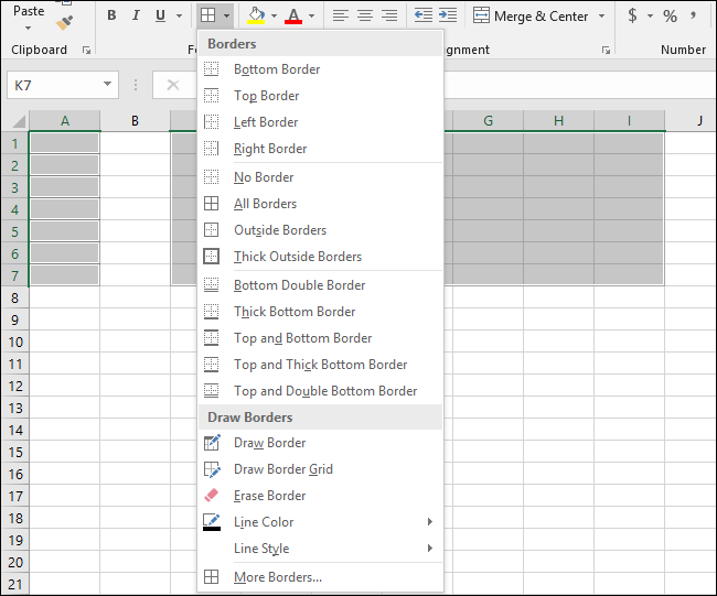 Toward the bottom of that menu, you’ll also see a “Draw Borders” section. The options there let you click and drag to apply the selected border style, which can be handy if you’re trying to quickly put said borders on lots of different cells in your spreadsheet.
